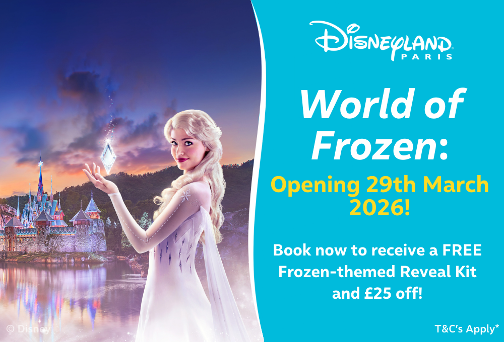 Book your next exciting Disneyland® Paris adventure for arrivals up to March 2027! Plus, you can experience the brand-new World of Frozen when it opens in Spring 2026!